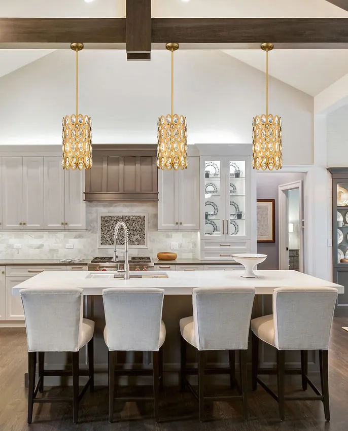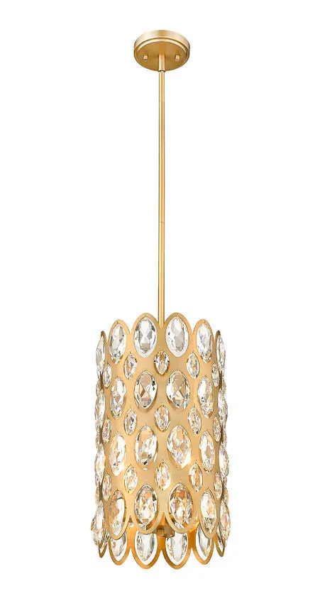 Introduce a sparkling touch to sophisticated decor with this modern glam three-light pendant. Its drum shade sports a rich and warm heirloom brass finish paired with oval cutouts. Each cutout hosts an oval crystal that sparkles in the light to cast a compelling ambiance over your kitchen, bedroom or powder room.