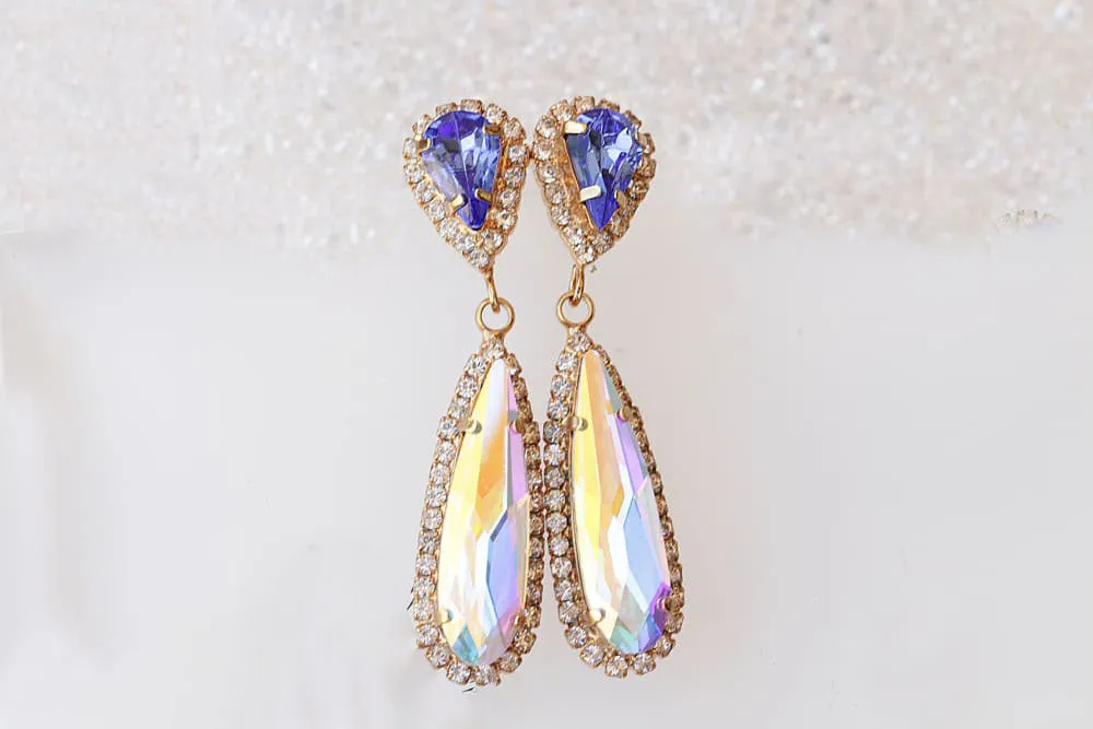 AB CRYSTAL EARRINGS, Sapphire Blue Ab Earring, Wedding Earrings, Crystals Ab Bridal Earrings, Chandelier Ab Earring, Bridesmaid Ab Earrings