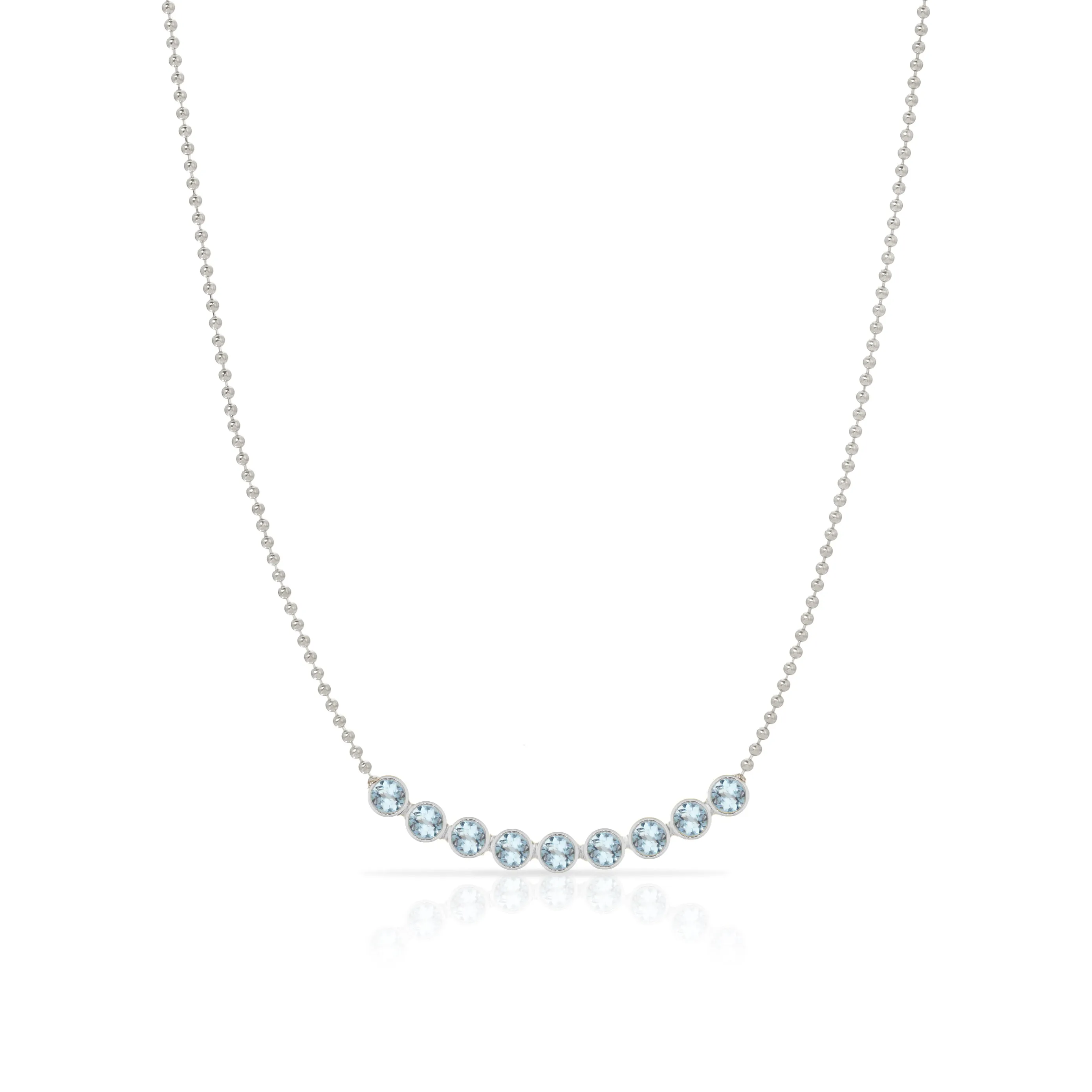 The Birthstone Arc Layering Necklace adds just the right amount of sparkle and the bead chain means no more impossible to get out necklace tangles!