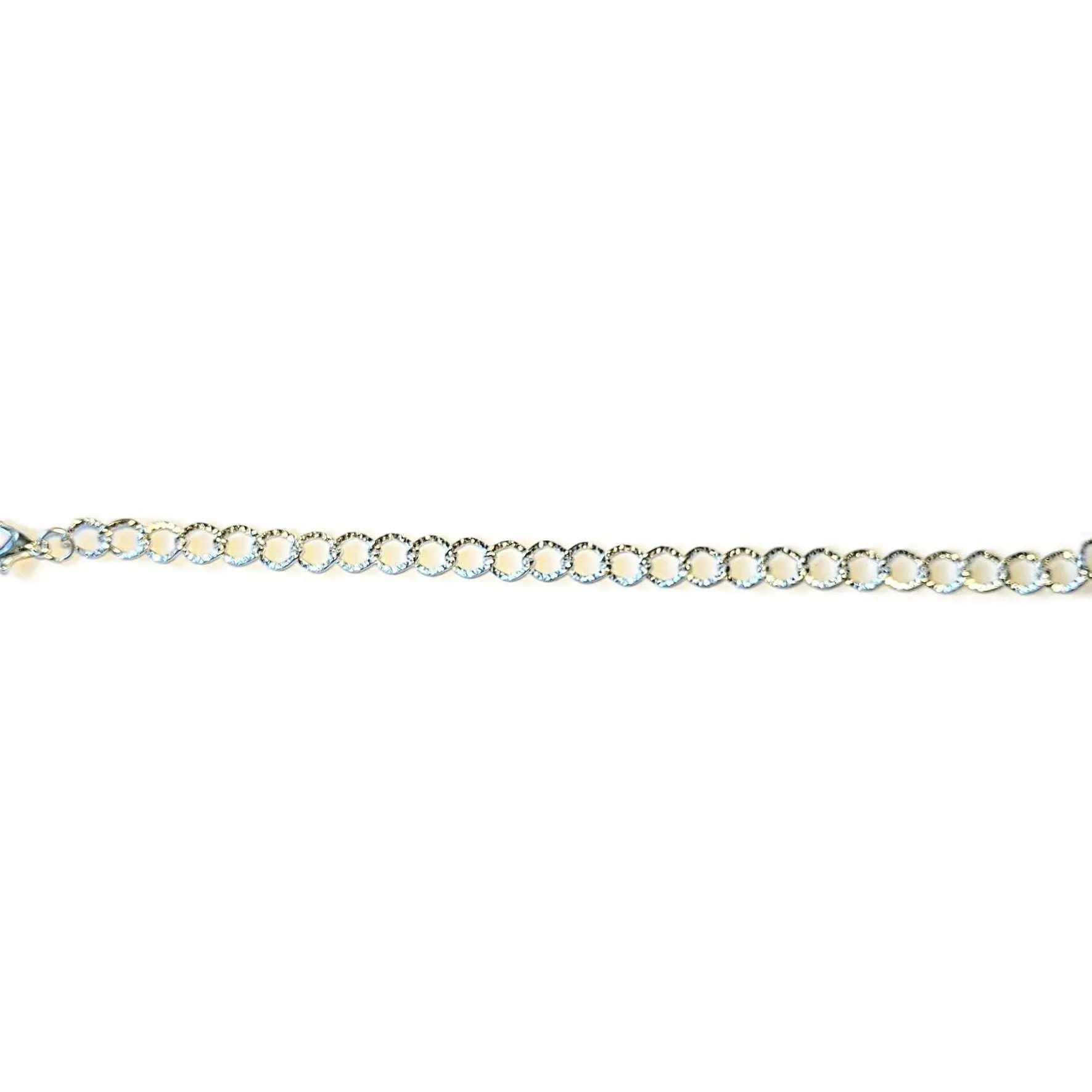Antique Silver plated Stainless Steel textured and plain oval link chain bracelet.