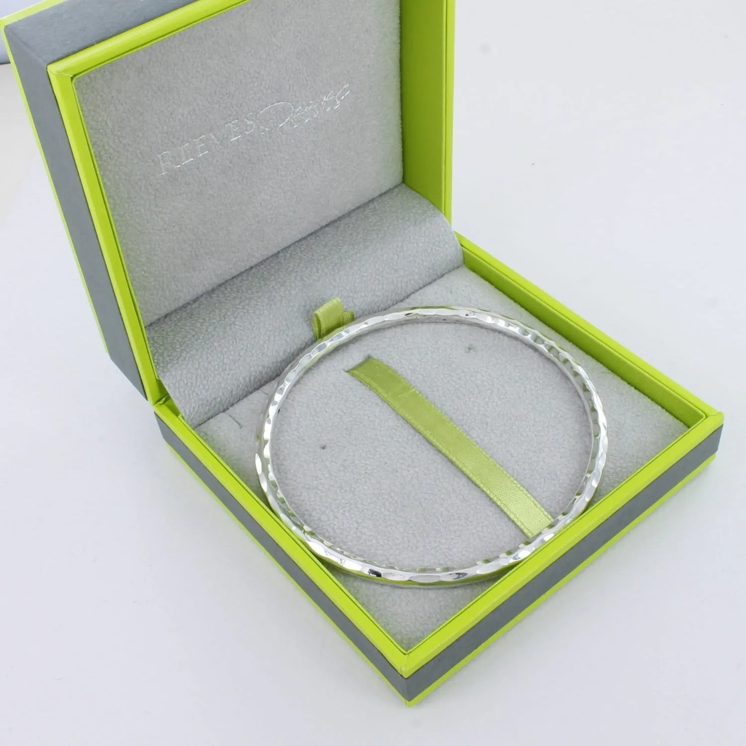 Our Textured Sterling Silver Alice Bangle is a bestseller. It has a gently hammered texture with a high shine finish that really catches the light. It's gorgeous curving lines make this sterling silver bangle appealing to all! It is a lovely classic design with a contemporary feel.