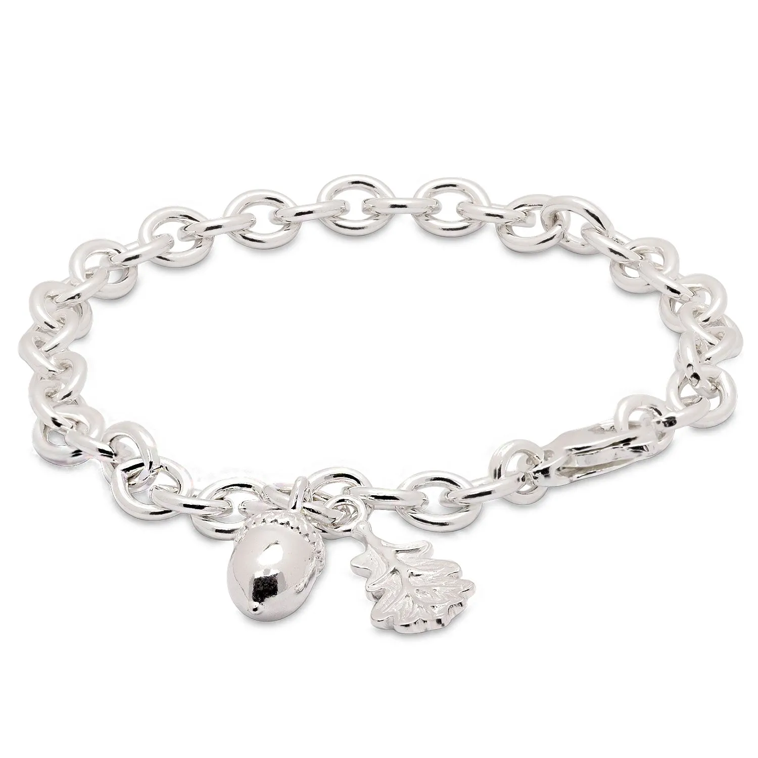 The mighty Oak tree symbolises strength and courage yet begins life as a tiny acorn - the meaning within the design shows strength in tiny beginnings, making this a perfect Christening keepsake bracelet. Something that can be added to over time to chart the stories of a growing new life.