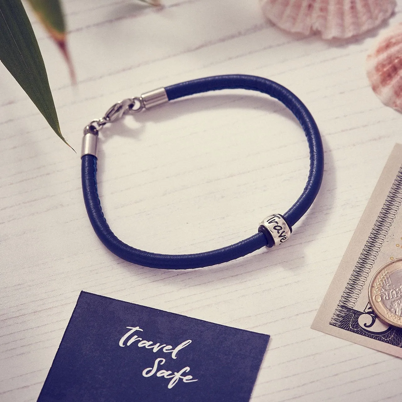 Send them off on their world adventures with a positive lucky talisman - 'Travel Safe' etched into a solid silver bead charm. A positive message for good travels, each bead charm is handmade in solid silver and comes on a soft Italian leather bracelet in a range of stunning colours.
